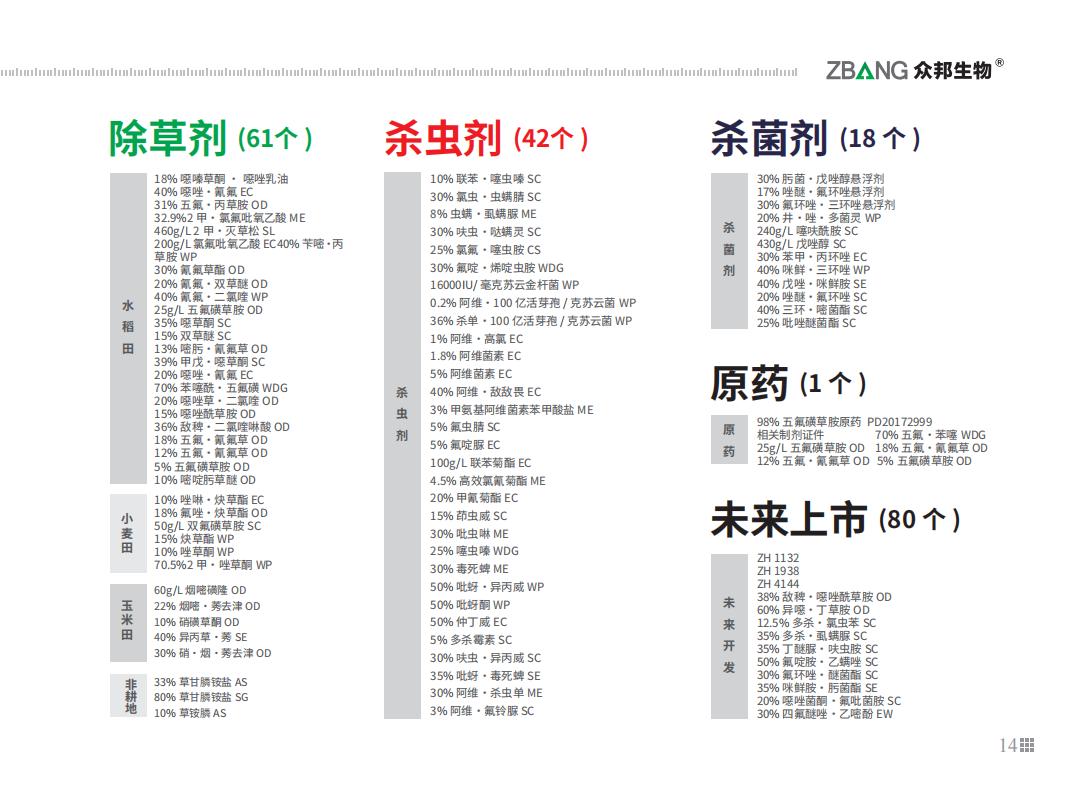 公司证件:除草剂61个,杀虫剂42个,杀菌剂18个;